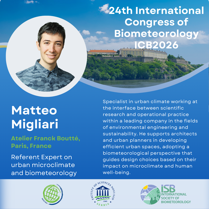 The 24th International Congress of Biometeorology (ICB2026) will take place at the University of Novi Sad, Faculty of Sciences, Serbia, from July 13 to 16, 2026. Save the date and join us at ICB2026 to be part of this important event. We look forward to welcoming you to Novi Sad, Serbia!